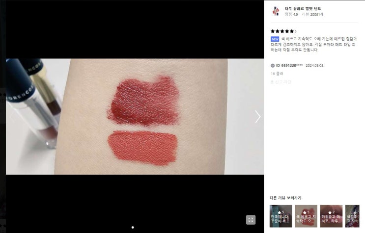 포렌코즈 타투 글로스 틴트!어도러블/프랑 쿨톤 추천임당^^♡