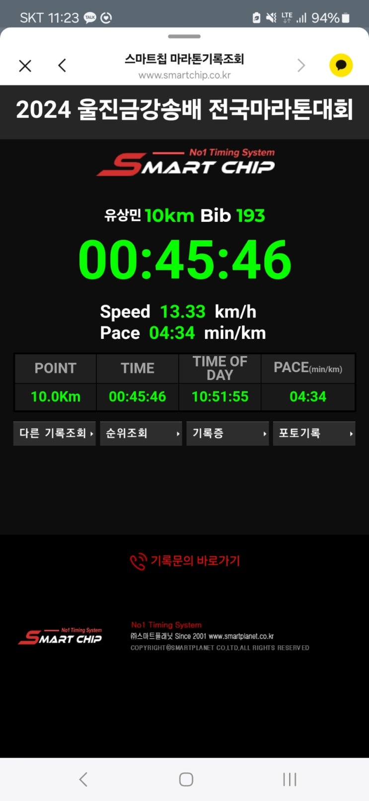 2024.울진 금강송마라톤10km.45분대.