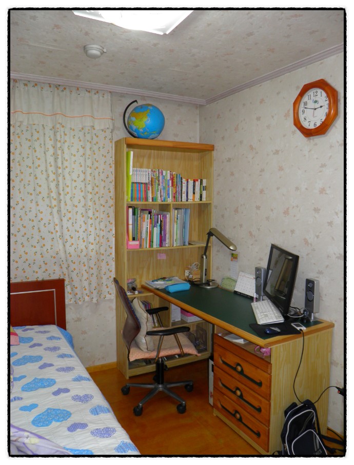 우리 보물...지윤이 방을 한번 찍어봤어요..ㅎㅎ 책장이 휑하지요? 책들은 거실에 있는 책장에 거의...