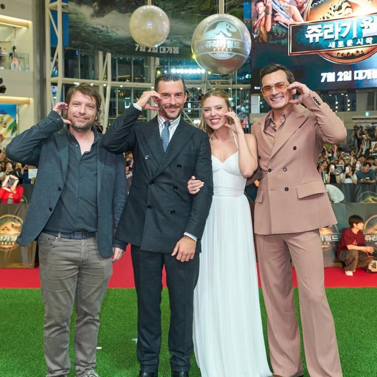 내한한 <쥬라기 월드: 새로운 시작> 멤버 레드카펫, 김치 7종 먹은 스칼렛 요한슨&조나단 베일리&루퍼트 프렌드