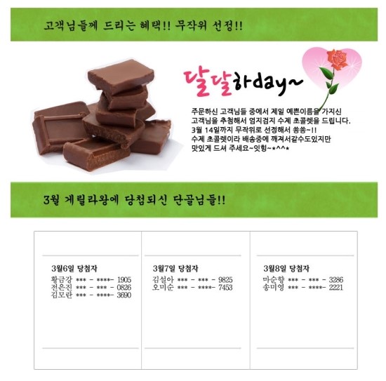 3월 14일 화이트데이! 수제초콜릿 증정 이벤트- 달달하Day~