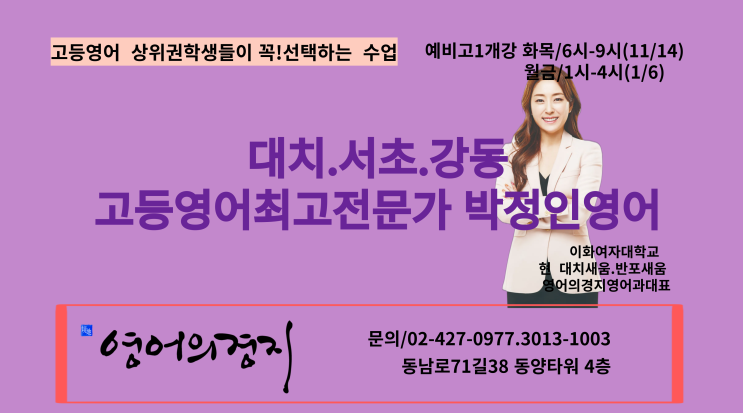 안녕하세요? 고등영어의 최고전문가! 박정인T 대치.반포 고등영어 장기집권중! 박정인 영어T 우리자녀의 ...