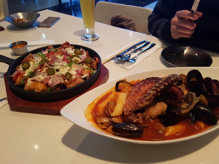 아직 장염의 늪에서 못 벗어났는데 휴가 나온 군인 친구랑 잡은 약속이라 깰 수가 없어서,, 덜 자극적인 음...
