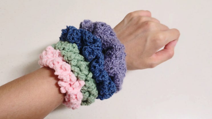 테리 선염 스트라이프 헤어슈슈 부드러운 테리 곱창 머리끈 보들한 단면 수건느낌의 선염 멜란지 테리 헤어...