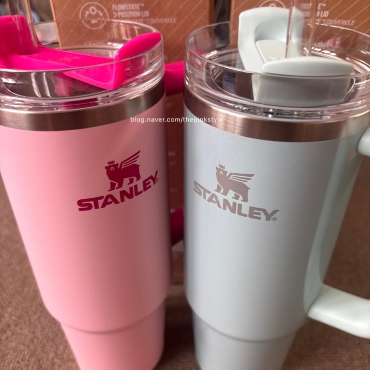 스탠리 텀블러 887 플라밍고랑 블루베리밀크 컬러에용 이번주 생일 주간을 받아 선물 받았는데요 스탠리 색...