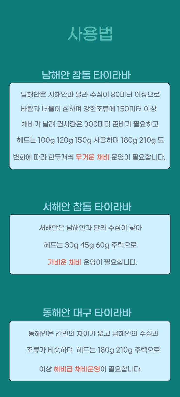 텅스텐 헤드 사용 방법 알아보기 수심이 낮은 서해안과 수심이 깊은 남해안으로 구분하여 텅스텐 헤드 사용...