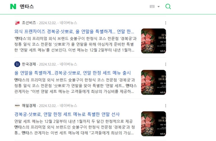 글로벌 외식 기업 엔타의 언론홍보 진행사례입니다. 엔타스 그룹은 경복궁, 삿뽀로 등 국내 120여개의 지점...
