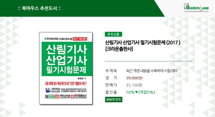 산림기사 산업기사 필기시험문제(2017)[크라운출판사] - 독자대상 : 산림기사/산업기사준비...