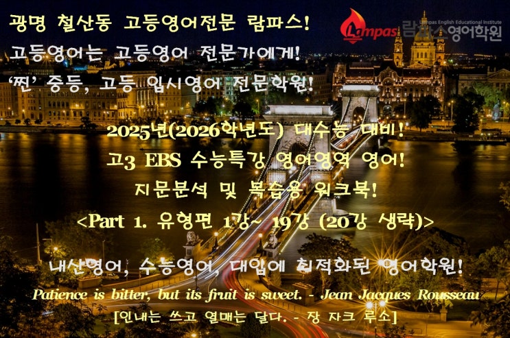 안녕하세요~ 중고등 입시영어전문 람파스영어학원입니다. 지난 시간 지문분석에 이어 오늘은 2025년(2026학...