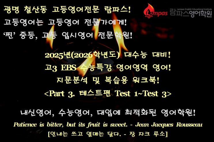 안녕하세요~ 중고등 입시영어전문 람파스영어학원입니다. 2025년(2026학년도 대수능 대비) 고3 EBS 수능...