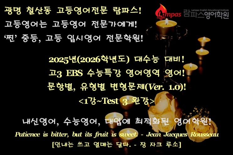 안녕하세요~ 중고등 입시영어전문 람파스영어학원입니다. 지난 시간부터 하나하나 올리다 보니 이번 2025년...