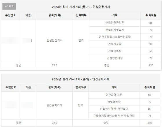 약 2년만에 인간공학기사 합격을 했다 ㅋㅋ 공부를 2년동안 했다는 말은 아니고 여러 사정상 접수만 해놓고...