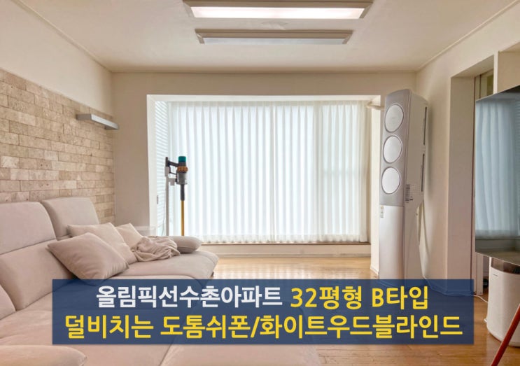 올림픽기자선수촌 32평형 덜비치는 도톰 쉬폰/형상기억100%암막커튼/화이트우드블라인드 시공[제이제이커튼]