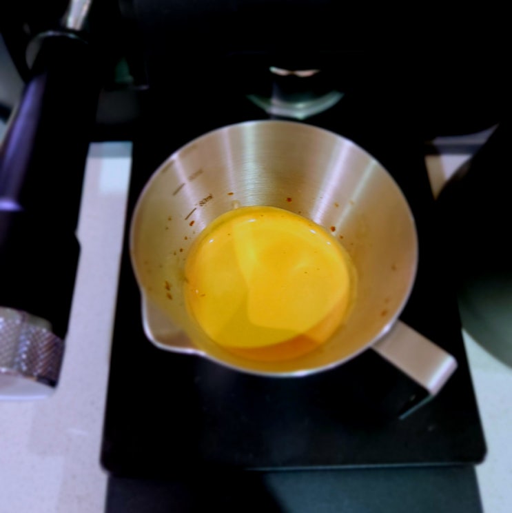... 하는 생각으로 실행 해봤습니다. 그리고 추출이 끝나고 포타필터 빼서 확인해 봅니다. 늘하듯 16그램 ...
