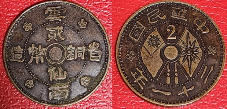 [컬렉션갤러리] 중화민국21년(中華民國21年) 운남성조(雲南省造) 쌍기(双旗) 이선동폐(貳仙洞幣)~!