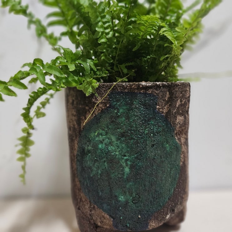 달항아리 그림 화분에 보스턴 고사리 분갈이 및 키우기