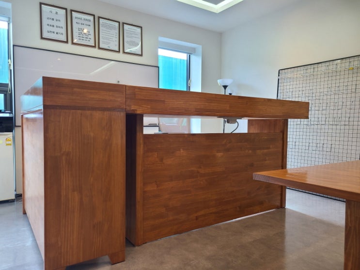체형에 맞게 주문제작의뢰하신 원목책상 입니다 기업체 임원실의 책상으로 기성품보다는 체형에 맞게 맞춤...