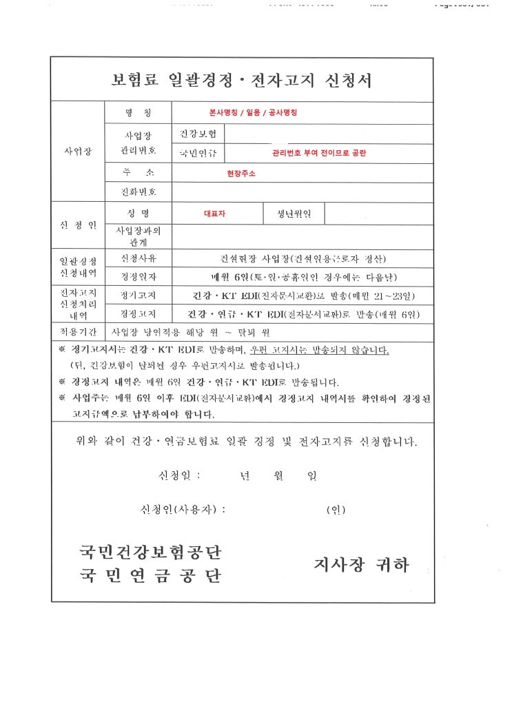 건설 현장 건강보험/국민연금 사업장 적용 신고(현장 개설신고)