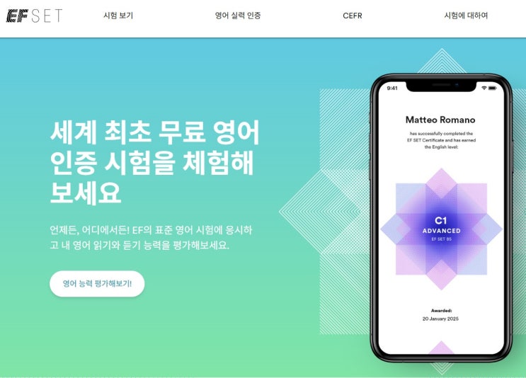무료 영어레벨테스트 EF SET (유럽공인 CEFR TEST)