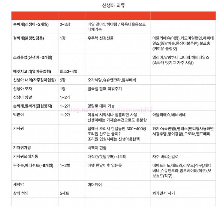 출산용품리스트::제2편 신생아의류