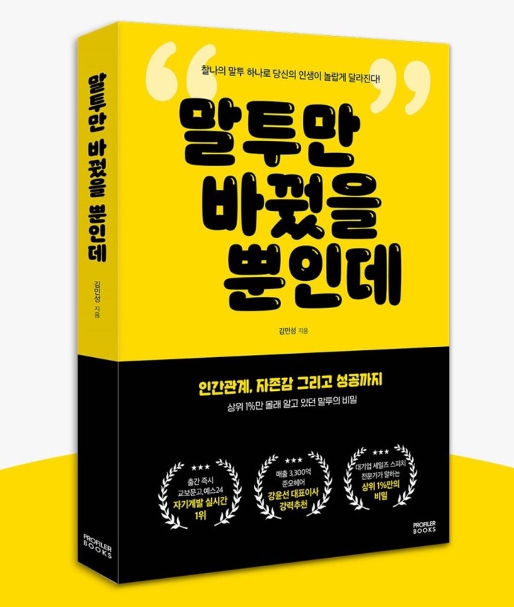 제목: 말투만 바꿨을 뿐인데 저자: 김민성 출판사: 프로파일러 북스 이번책은 말투에 대한것..! 최근 저의 ...