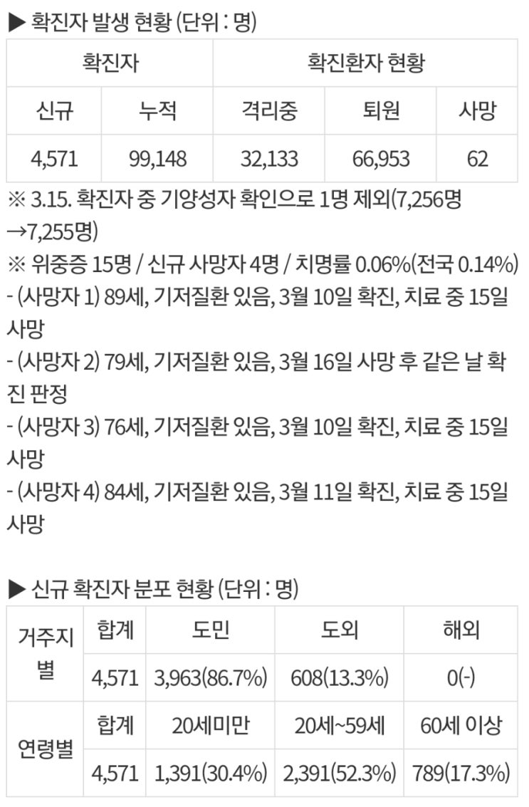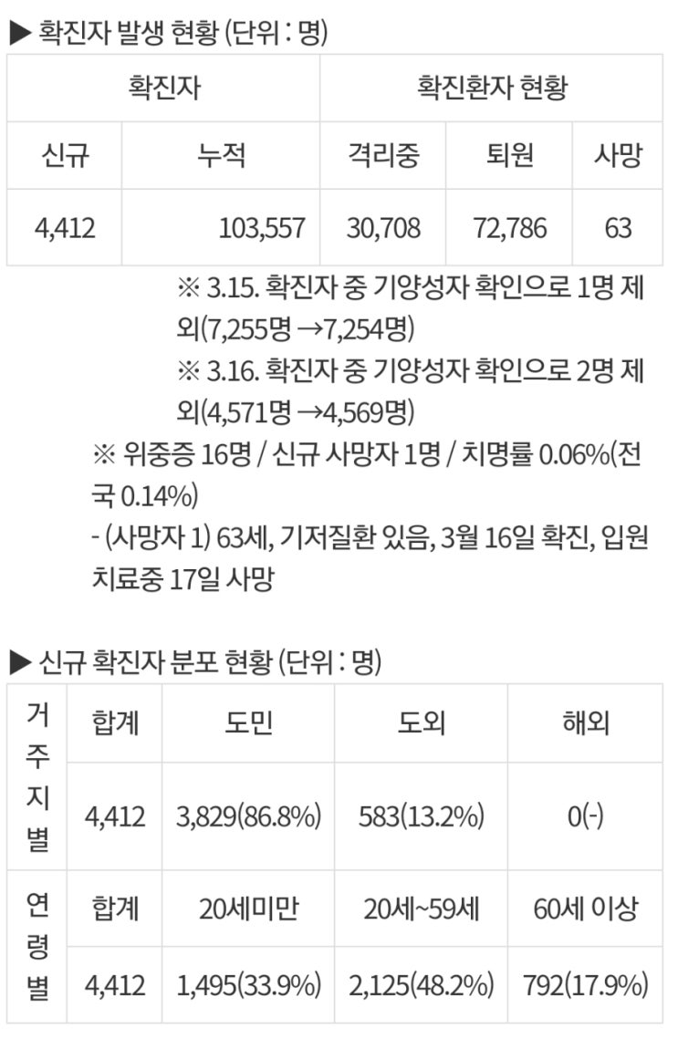 [도청브리핑자료에서 ...추가변경내용이 나오면 첨가하겠습니다.] * 16일, 오후5시기준 확진자수 : 4,421명...