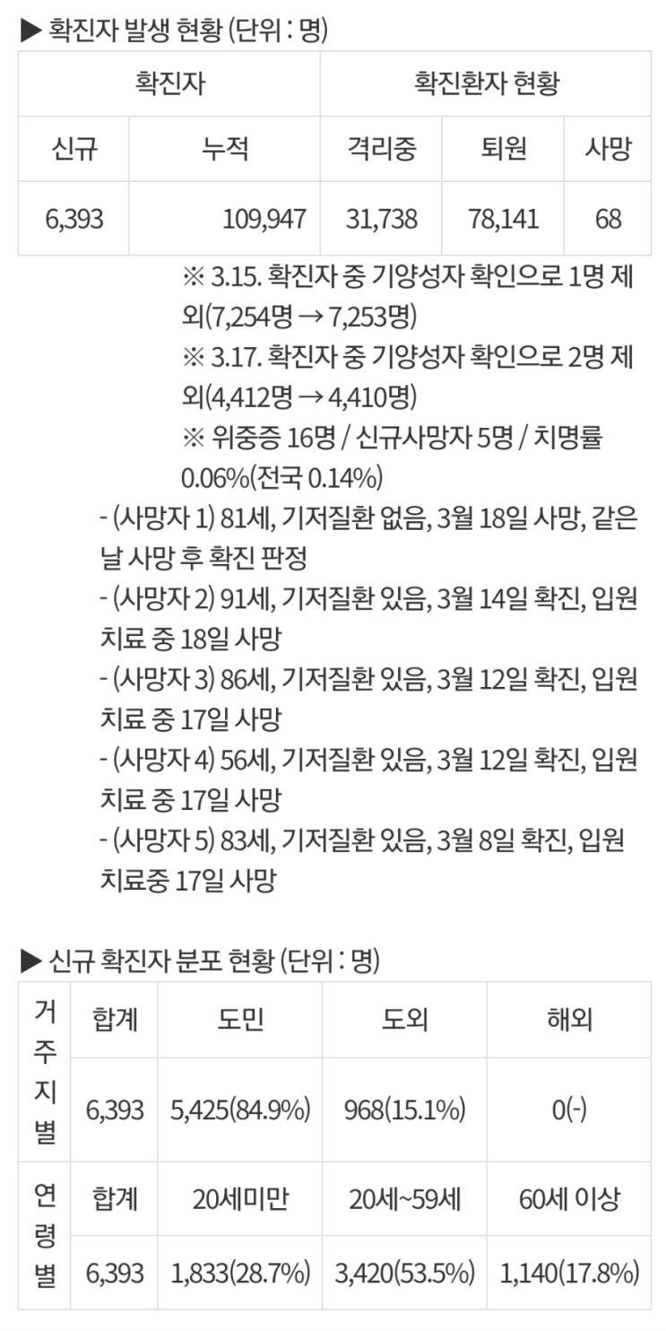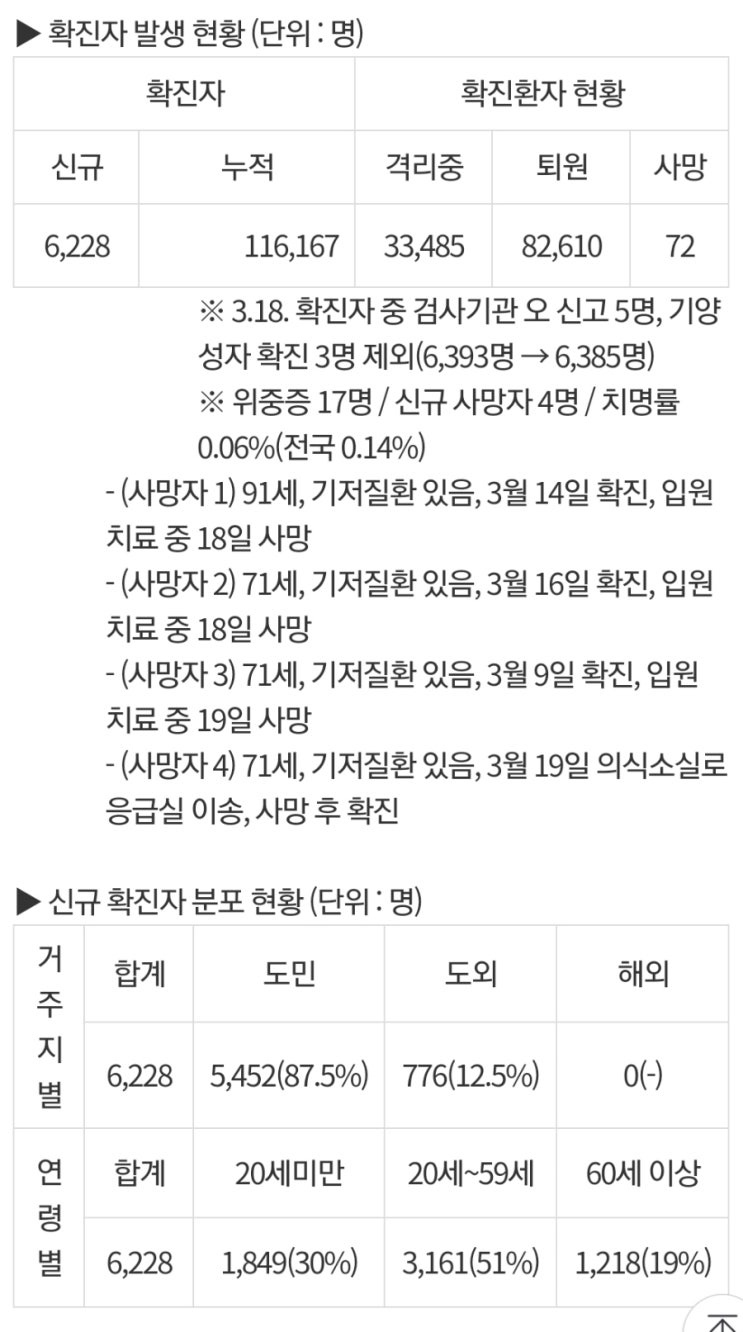 [도청브리핑자료에서 ...추가변경내용이 나오면 첨가하겠습니다.] * 18일, 오후5시기준 확진자수 : 4,455명...