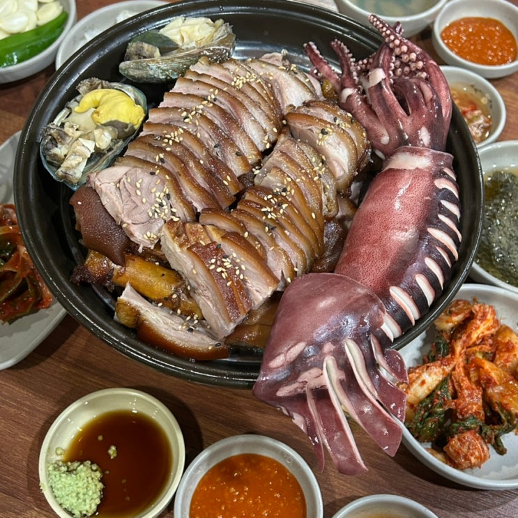 울산 명촌 맛집 오징어숙회 전복 가득 명촌 회식장소 철이족발