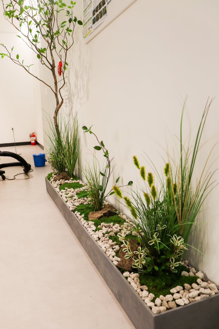 직원식당 앞 플랜테리어 시공 마이크로 시멘트 플랜트박스로 완성한 공간 연출 사례