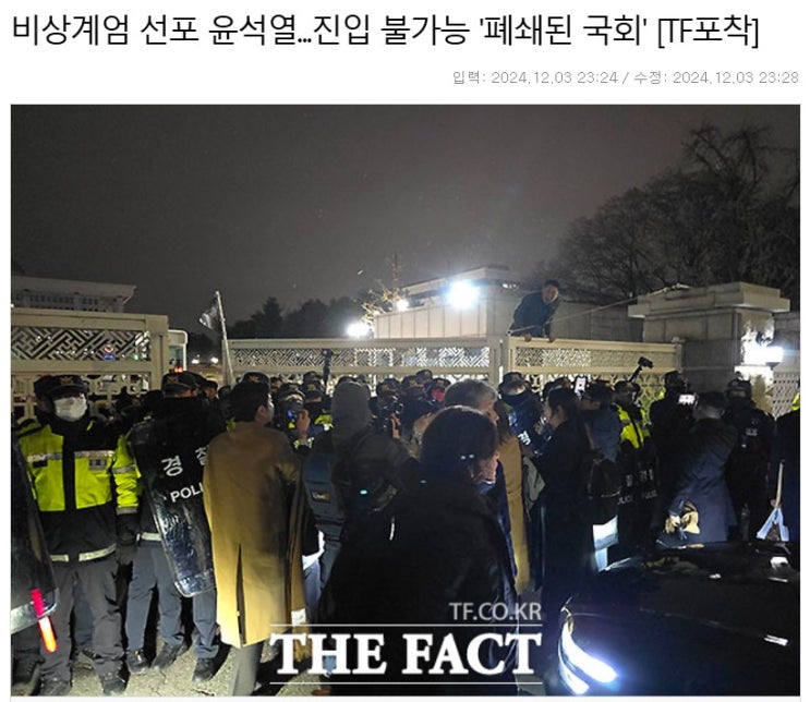 윤석열이 우리의 역사를 갈취하는 날이다! 평일 늦은 밤에 비상계엄 선포와 국방부 장관은 전군 비상 경계,...