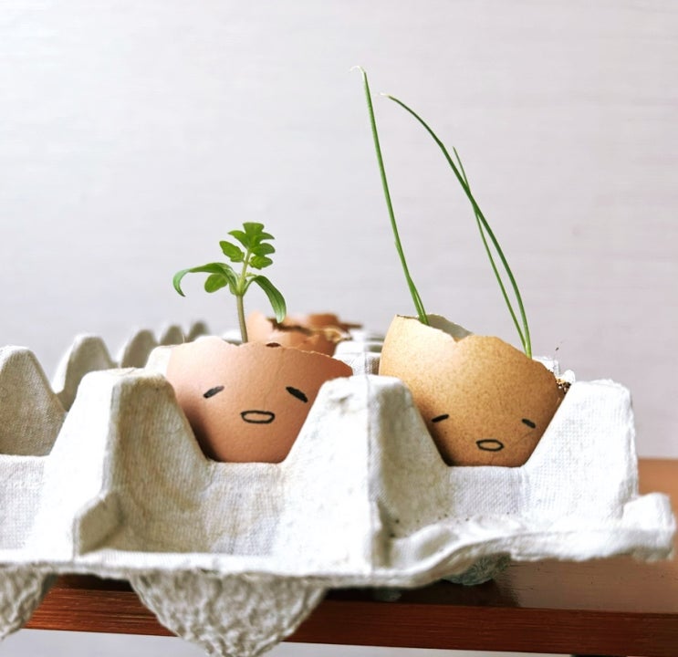 [재배][베란다 텃밭] 계란껍데기 화분에 심은 모종 정식