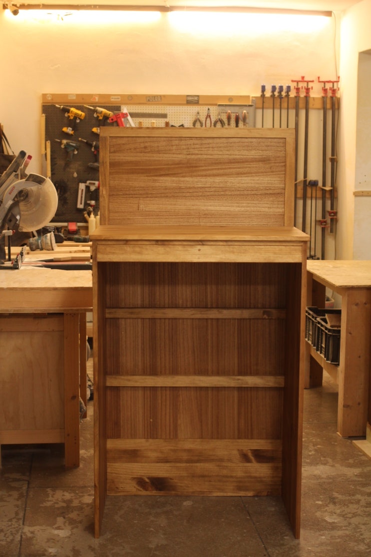 사이즈: 가로 648 * 폭518 * 높이1470 수종: 소나무 (뉴송) 마감: 오일스테인( 라이트월넛 색상) 무더운 여...