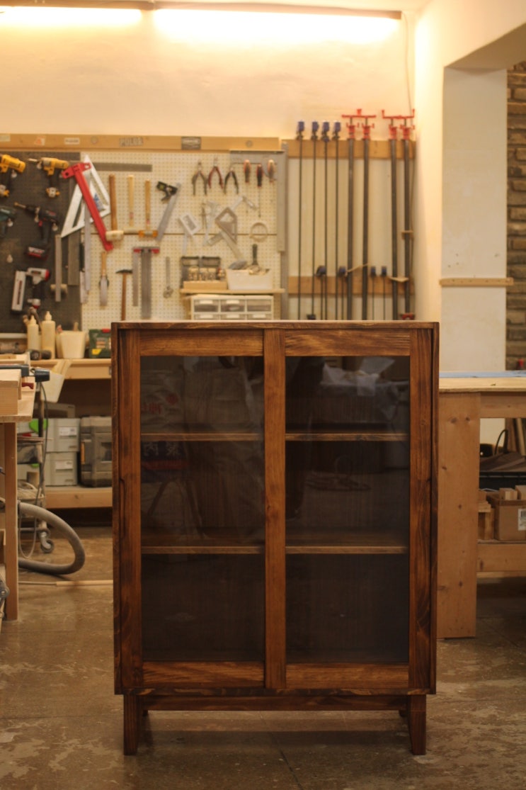 사이즈: 가로750* 폭 320 * 높이 1200 수종: 소나무(뉴송) 마감: 옻 오일 스테인(차콜브라운 색상) 공방여...