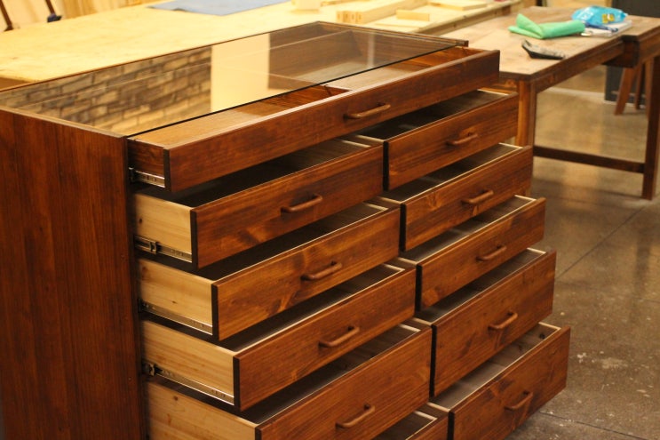 사이즈: 가로 800 * 폭 480 * 높이 1186 수종: 소나무(뉴송) 마감: 오일 스테인 (블랙월넛 색상) 맞춤 제작...