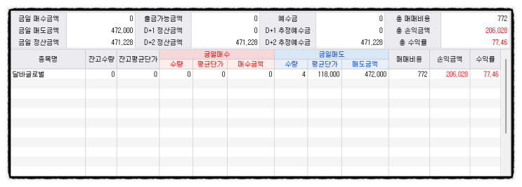 달바글로벌 상장 매도 수익실현