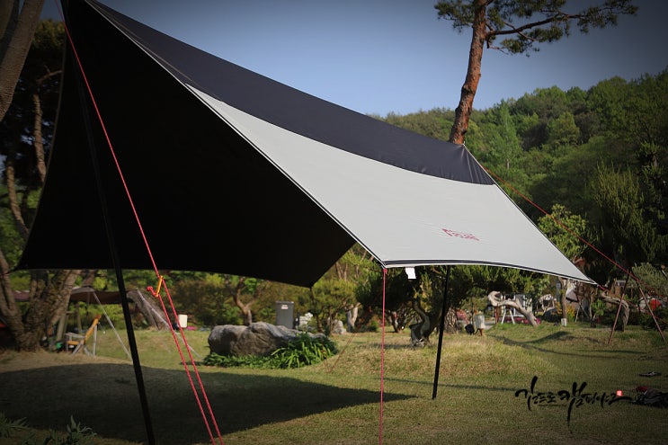 블랙코팅 렉타타프 추천 폴라리스 치는법 알면 편한 캠핑 가능 이제 아침 저녁과 달리 한 낮에는 햇살이 강...
