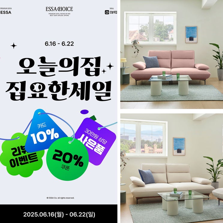 지금이 찬스! 6/22까지 오늘의집 단독 할인 에싸 패브릭소파 혜택 총정리 6월은 한 해의 절반 시점이라 그...