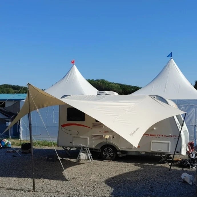 카라반 레일에 끼워서 설치하는 인디캠핑 심지 헥사타프! 카라반이 없을때는 아래와같이 차박용 타프로 사...