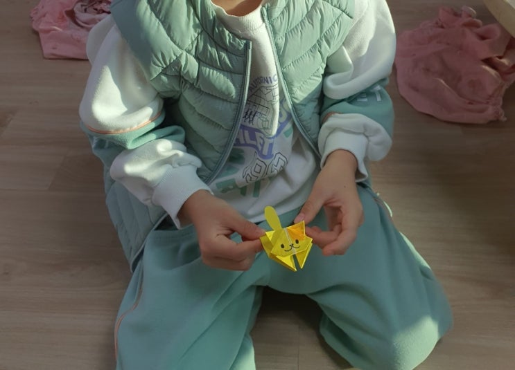 #기특이작품기록 / 6살 기특이가 탭을 보면서 무언가 부지런히 접고 있다. 우리딸은 왜 저러고 있는가. 먹...