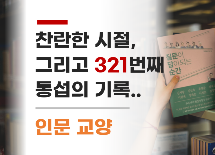 독서 다이어리 그 321번째 책 리뷰다. 인문 교양 관련 서적으로 바로 "질문이 답이 되는 순간"이...