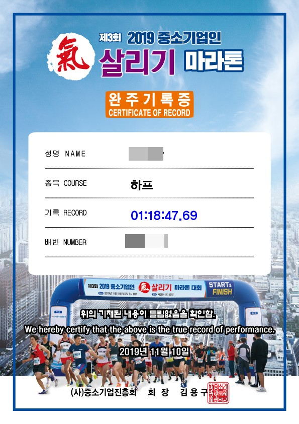 [2019.12.7] 한강시민마라톤 하프 후기