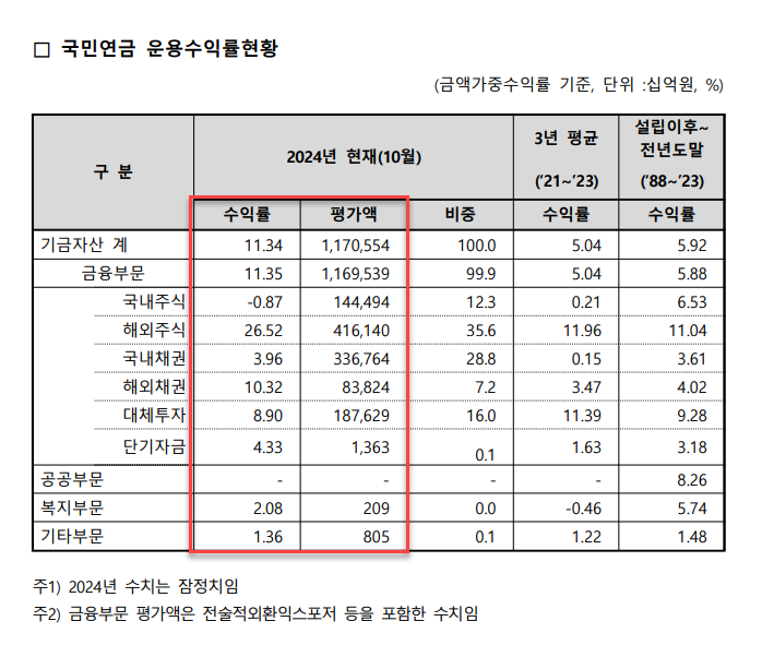 국민연금 2024년 운용수익률현황