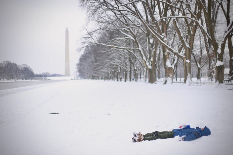 눈이 소복히 내려앉은 워싱턴 DC 내셔널몰 풍경