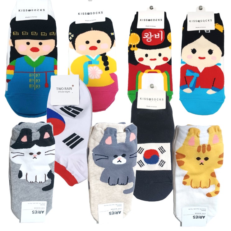 한국 전통 캐릭터 귀여운 디자인 덧신 양말 스니커즈 외국인 선물용 굿~