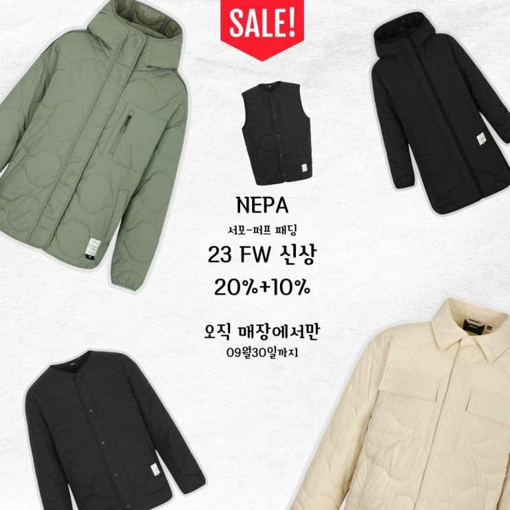 23 FW 신상 서모-퍼프 패딩라인 20%+10% 할인 행사 오직 매장에서만 2023년 9월 30일까지 진행합니다. 스...