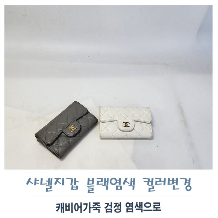 샤넬 캐비어지갑 가죽염색 색상변경 컬러체인지~블랙염색으로 샤넬 캐비어 지갑입니다. 두지갑 은장 금장 ...