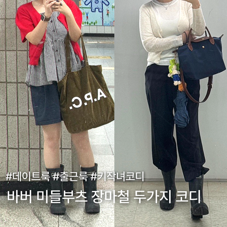 바버 미들부츠를 곁들인 장마철코디 (장마 데이트룩 & 출근룩 코디)