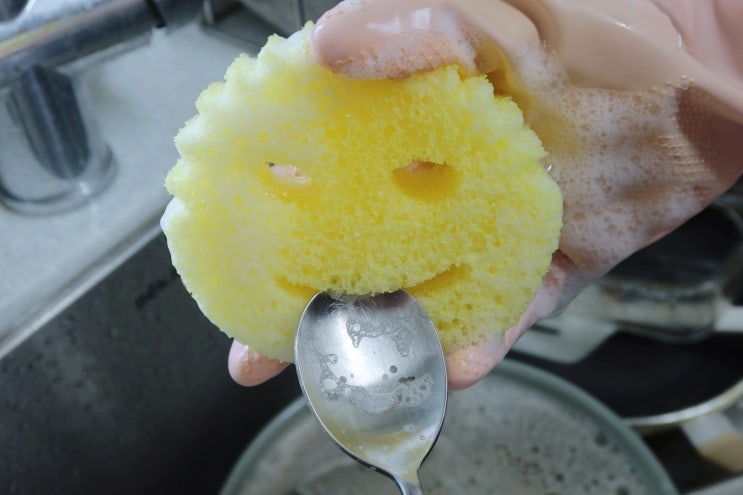 주방 싱크대 앞에서 매번 냄새나는 수세미로 고민하던 차에 SNS에서 자꾸 보이던 노란 웃는 얼굴 수세미...