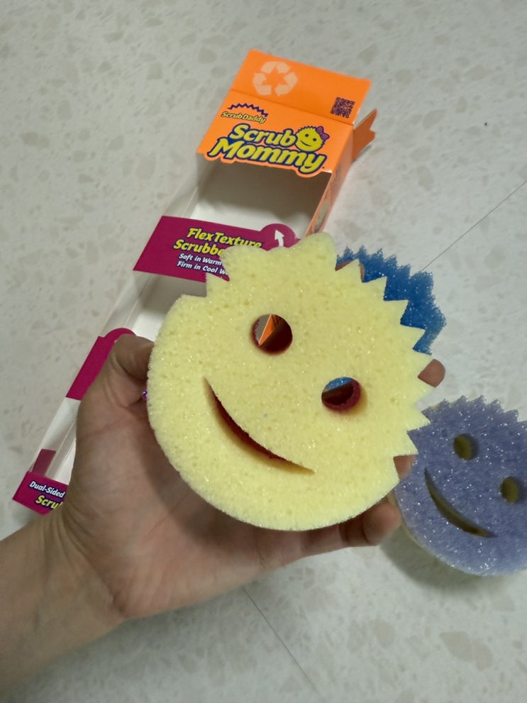 주방 싱크대 앞에서 매번 냄새나는 수세미로 고민하던 차에 SNS에서 자꾸 보이던 노란 웃는 얼굴 수세미...