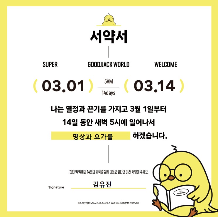 미라클모닝 3월 514챌린지 서약서인증